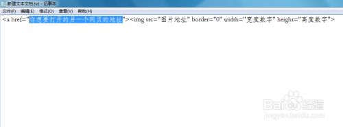 <a href="你想要打开的另一个网页的地址"><img src="图片地址" border="0" width="宽度数字" height="高度数字">
