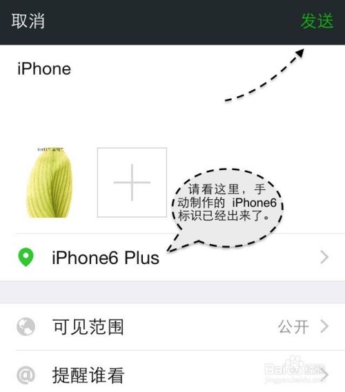 如下图所示,当小伙伴们看到你发布了带有 iPhone6 的标识,他们很快就会过来围观了。