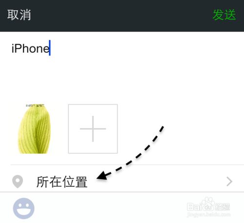 这里以在微信的朋友圈中发一张图片为例,添加好照片以后请点击“所在位置”选项,如图所示