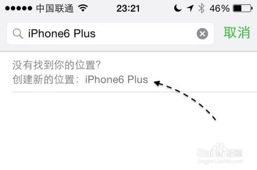接着微信肯定是搜索不到 iPhone6 Plus 的位置信息了,接下可以让我们自己创建位置信息,点击我们输入的 iPhone6 Plus 一栏,如图所示