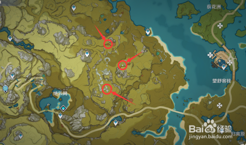 打开地图,前往图中的三个位置