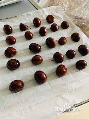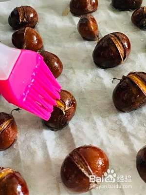 用刷子将糖水刷在板栗表面上