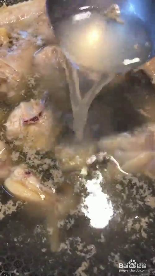 我们把处理干净的鸡改刀砍成块,把它们冷水下锅,加去腥的料酒进行焯水,水开后打去浮沫,冲洗干净备用