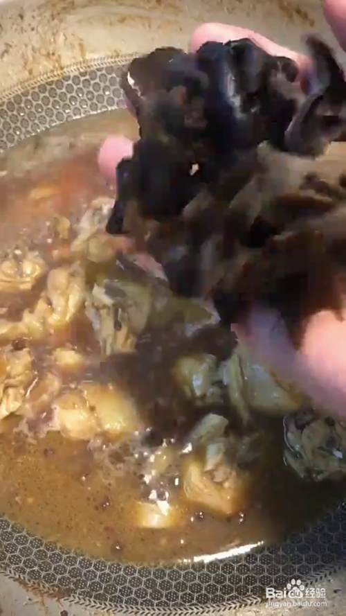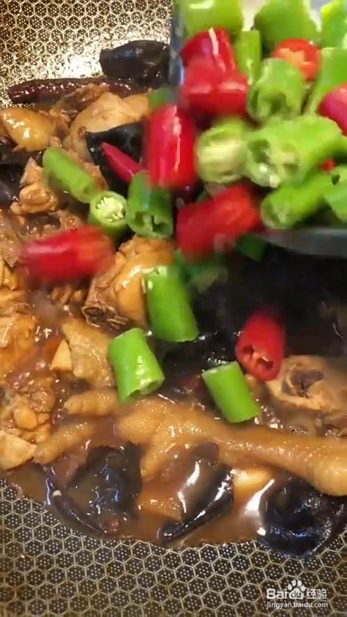 开中火炒两下,再加适量的水,盐,鸡粉和十三香调味,再放泡好的木耳,扣盖炖10分钟左右,最后放青红美人椒,大火收汁即可食用