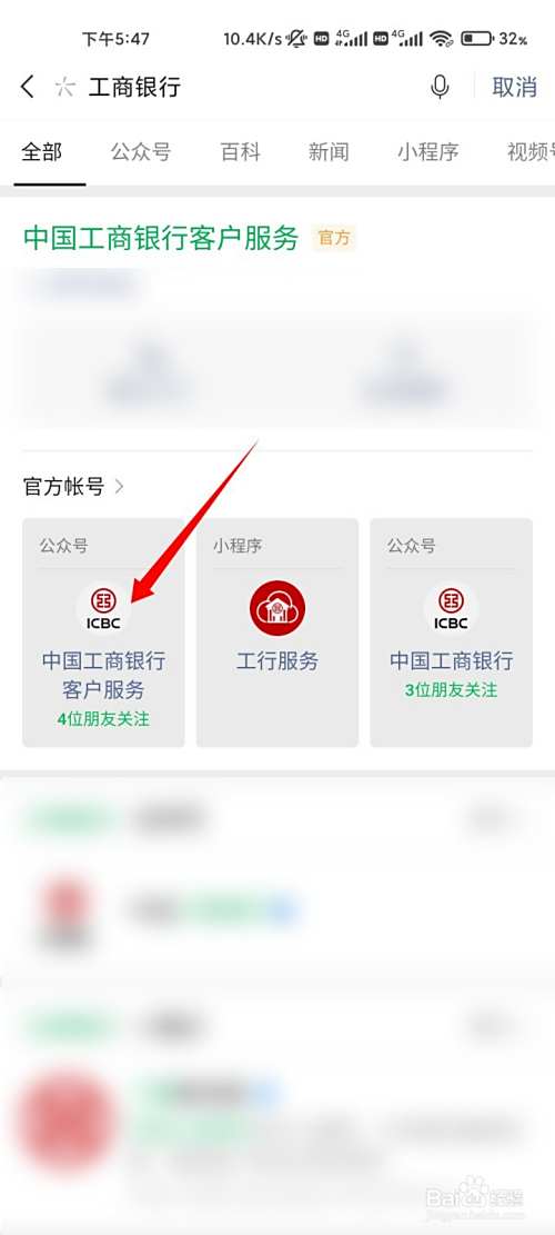 在搜索框中输入关键词工商银行,点击搜索按钮。