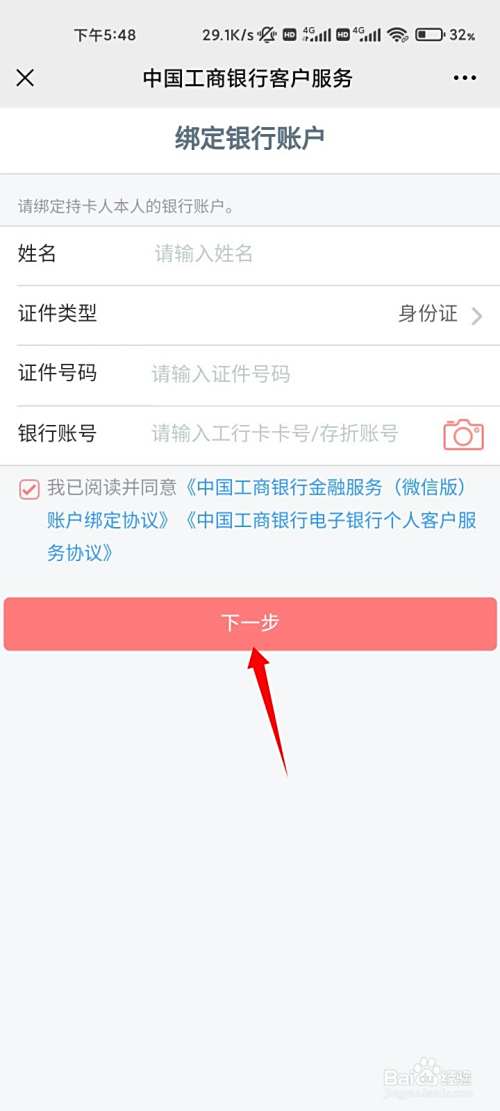 输入工商银行储蓄卡的卡号等信息,点击下一步,绑定成功之后即可查看余额。