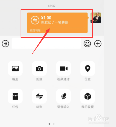 然后,待我们收到转账后,我们打开微信,我们点击转账人的微信,点击微信转账;