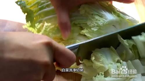 白菜洗净和葱蒜切开