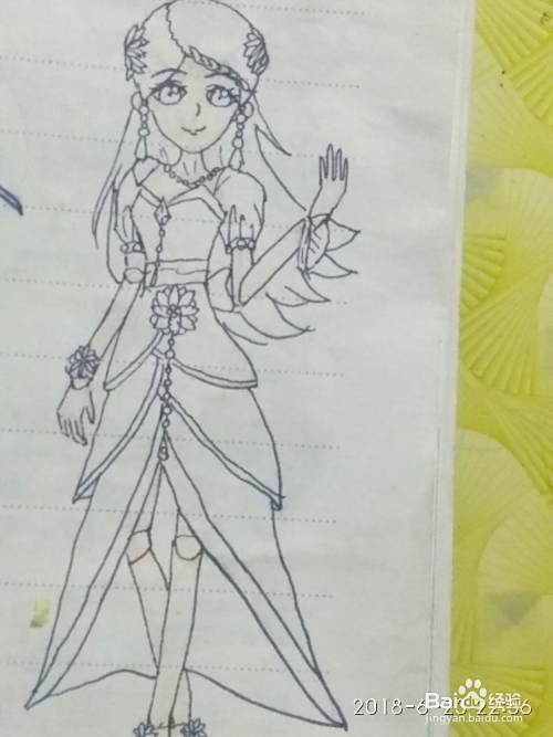 第六步--用黑色的勾线笔为希娜仙子描线,用黑笔也行。