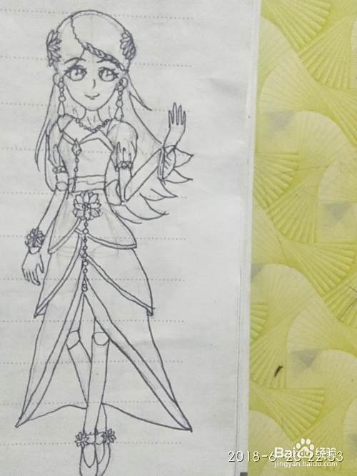 第五步--画出希娜的长裙,注意是三层的哟。