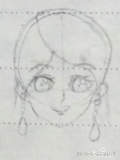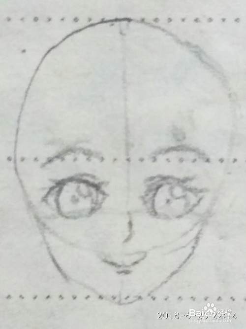 第二步--根据十字辅助线确定人物眉毛,眼睛,鼻子和嘴巴的位置,然后画出来五官。
