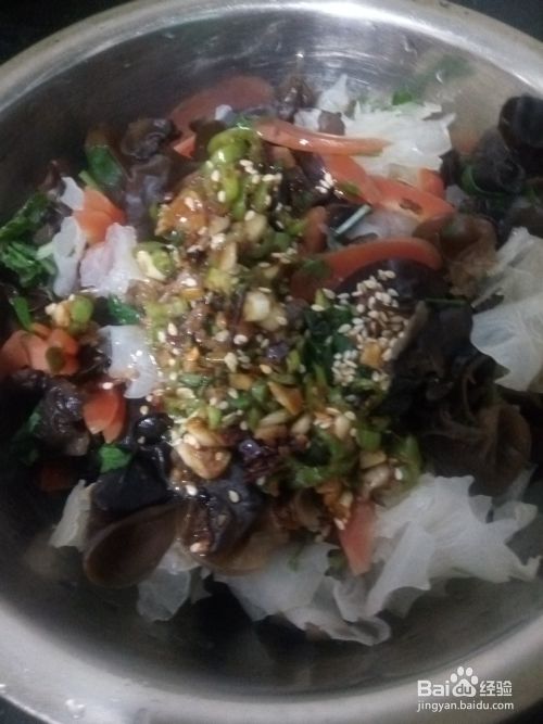 另起锅,放入花椒,烧热油。然后浇在菜上。撒上熟芝麻,就可以上桌享用了。