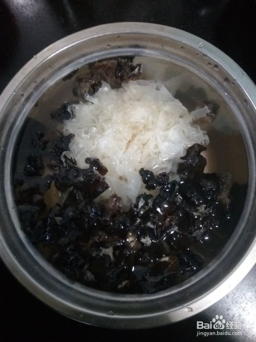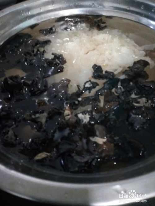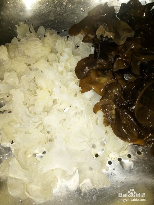 先用冷水泡发银耳和木耳。如果要赶时间可以用温水泡发。