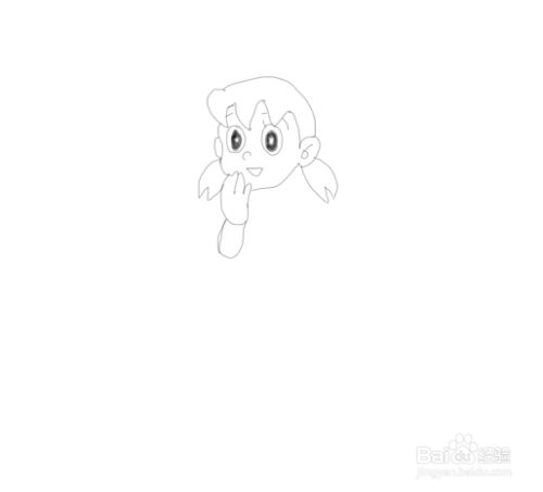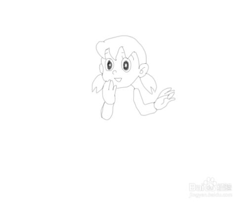 再在头部下面的右侧位置再画出小女孩的右侧的胳膊及手部,如图所示:
