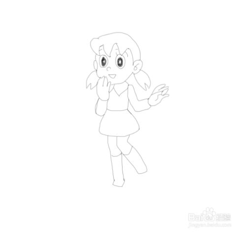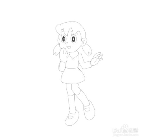 再在腿部上再画出小女孩的两只脚,这样小女孩我们就画好了,如图所示: