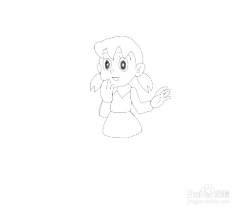 再在这两只胳膊的下面我们再画出小女孩的身体,然后在身体的下面再画出小女孩的短裙,如图所示: