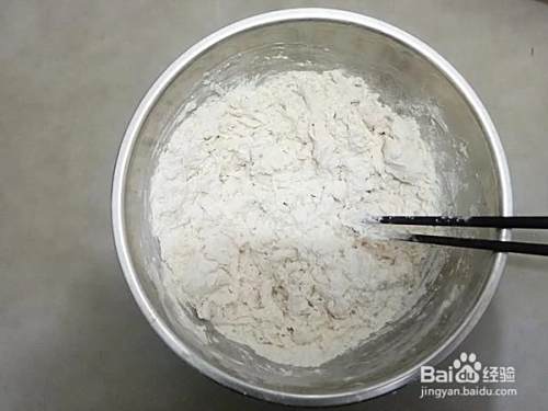 500克面粉和10克白糖混合均匀,倒入静置好的酵母水,边倒面粉边用筷子匀速搅拌。