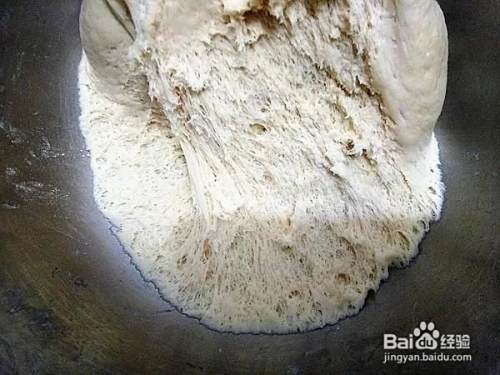 来一张近距离,看一看发酵好的内部组织,用手挑开表面的面皮,能看到密集的蜂窝状,这样就可进行下一步操作。