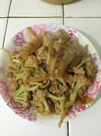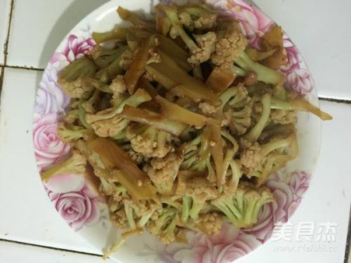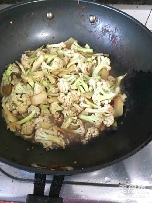 4然后下泡好的菜花,煸炒,让每一朵都沾上酱汁。