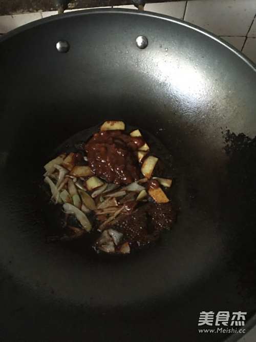 3热油,下葱姜炒香,然后转小火,下豆瓣酱炒香。