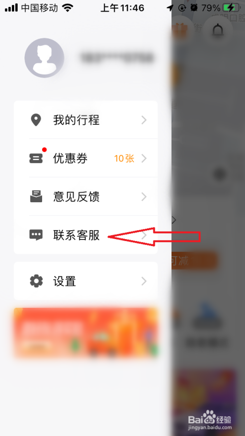 在左侧菜单中,点击红色箭头处的“联系客服”
