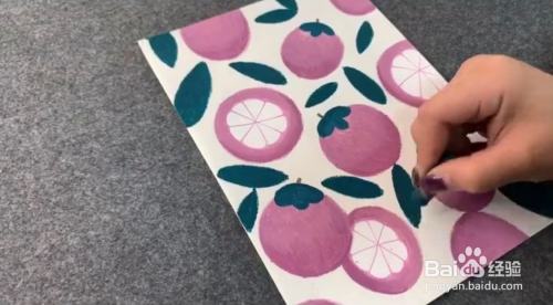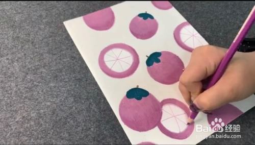 大家可以看到有一些山竹,我们可以直接全部都用紫色油画棒进行上色,其他里面,我们就用白色。