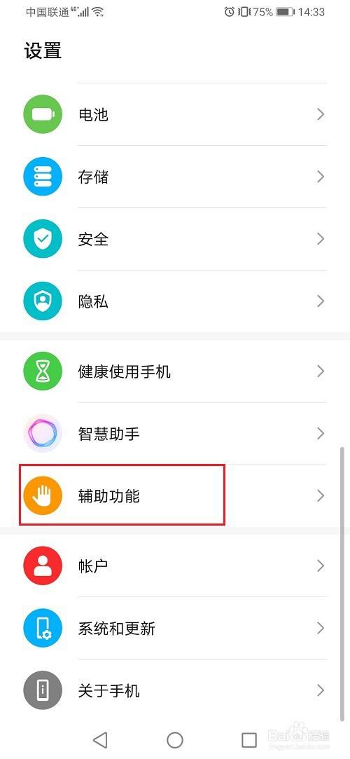 第二步进去手机设置之后,点击辅助功能