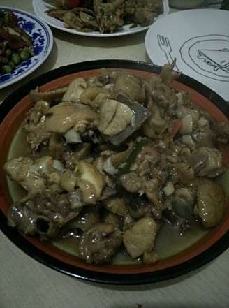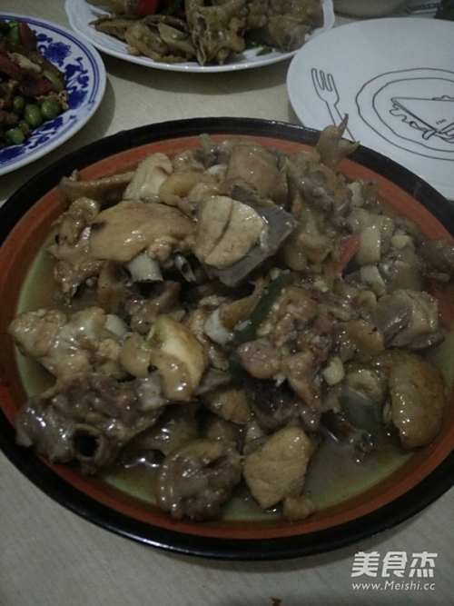 锅烧热 放油等油烧8分热姜蒜放进去在把鸡放进去,一直翻炒把鸡烧成金黄!