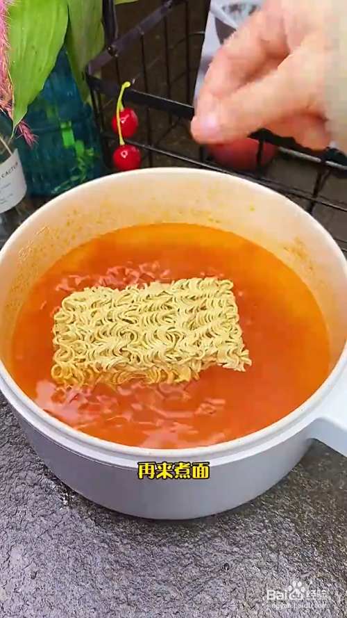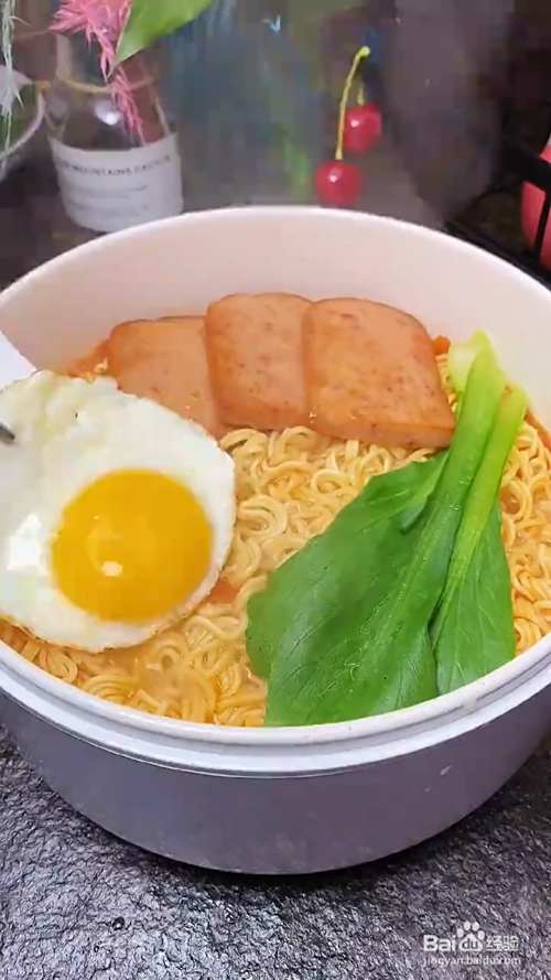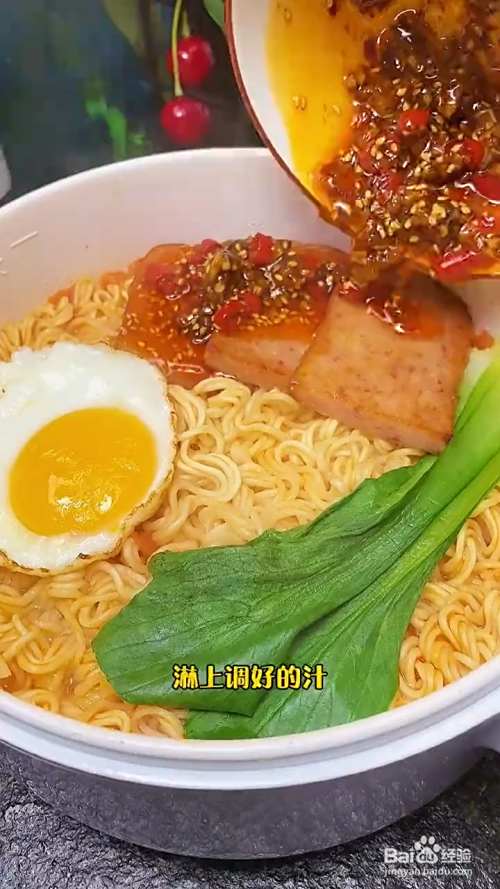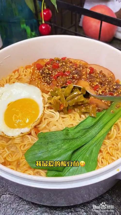 锅中加入100克泡面煮熟,加入100克熟肉,10克青菜,1个煎蛋,倒财陕入调好的调料,最后加入10克酸豆角即可