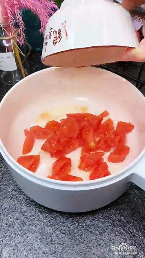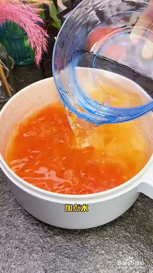 首先将100克西红忌关柿放入锅中,加入100克水,盖上盖子煮一下