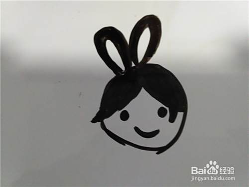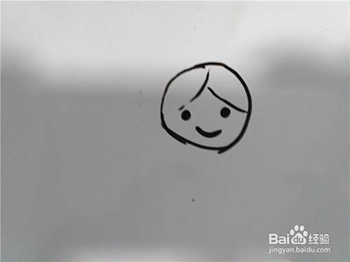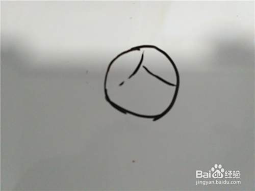 然后我们在圆圈里面写一个人字,也就是说画出人民脸和头发的分离。