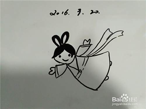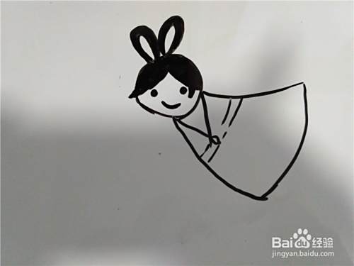 接下来画出嫦娥的眼睛和嘴巴,如下图所示。