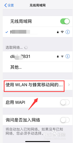接着点击使用wlan与无线蜂窝网络的。。。,如下图所示