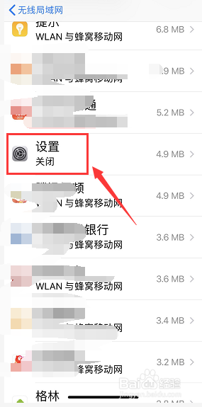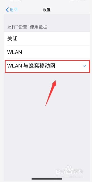 将设置联网权限设置为wlan与蜂窝网络,如下图所示