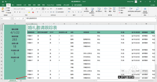 下面就可以在模板中制作一份“婚礼邀请跟踪表”了。如下图: