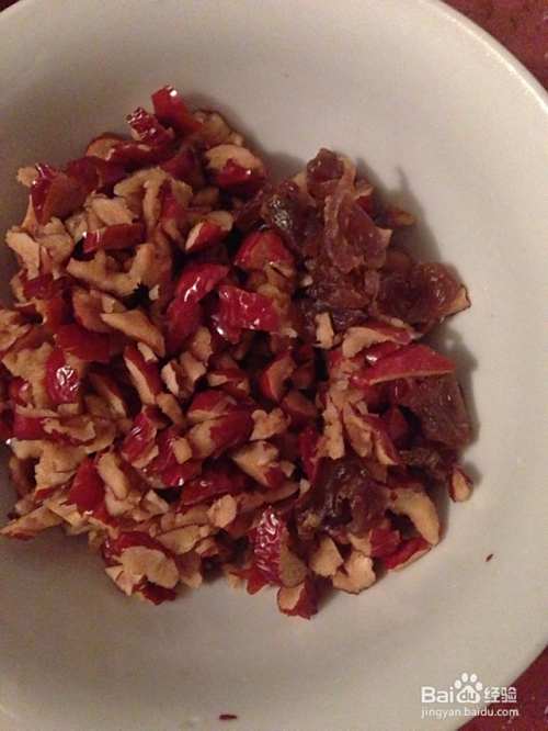 把桂圆和红枣的核都剔了,(可以边看电视边剔,有干净的剪刀也可以直接剪)