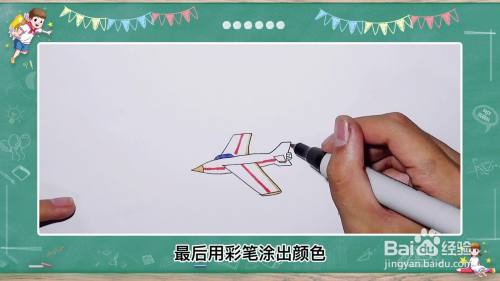 最后用彩笔涂抹颜色,一个简单地飞机就画好了。