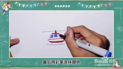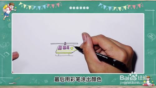 最后用彩笔涂出颜色,一个可爱的飞机就画好了。