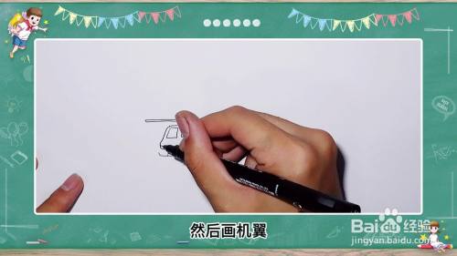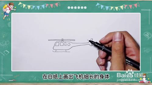 首先用笔在白纸上画出飞机细长的身体