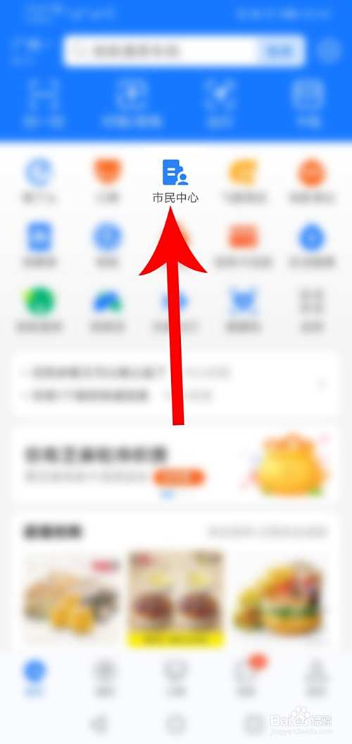 然后在支付宝首页上方的菜单找到“市民中心”,没有的话点击“全部”。