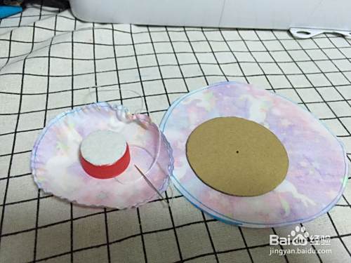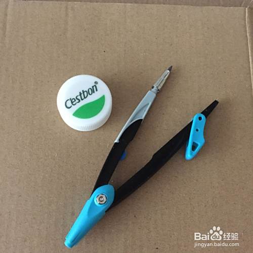 指南针画圆。一块圆纸板做帽檐,一块布做瓶盖,一块布做帽檐