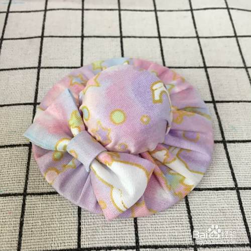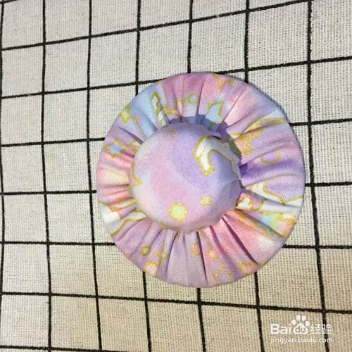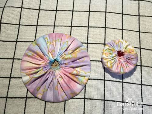 如图在两块圆布外圈疏缝,针距不宜太大,将瓶盖和帽檐包好