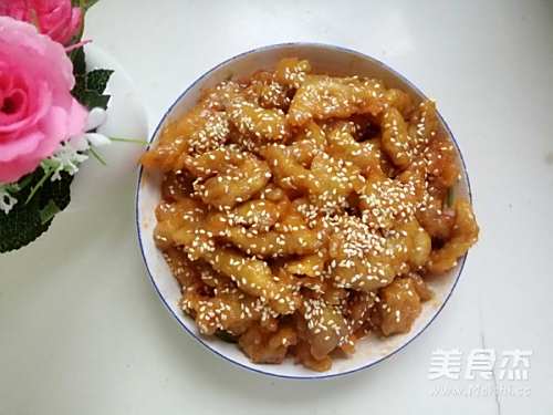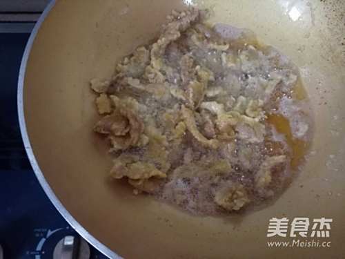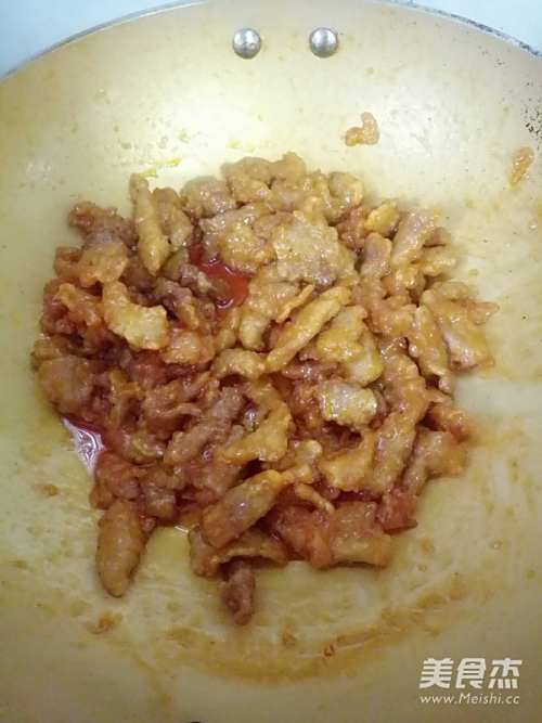 9等汁粘稠时倒入炸好的肉条,翻炒上色
