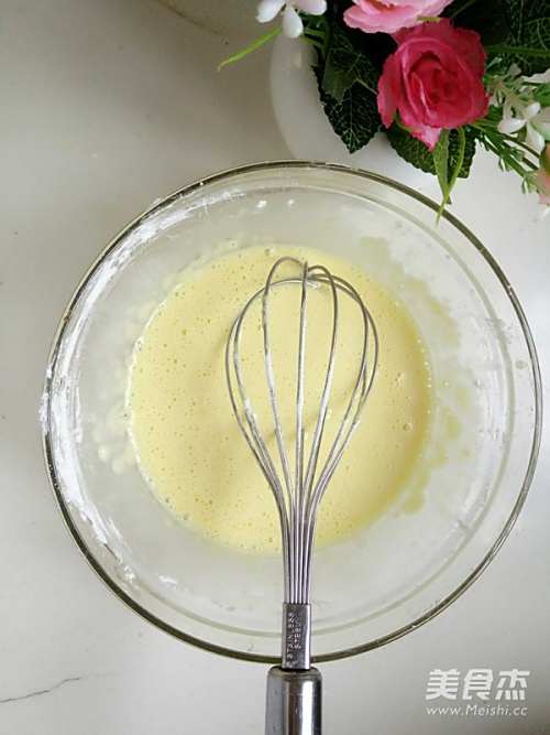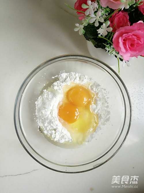 4加入一点清水,将鸡蛋跟淀粉搅拌至糊状,不能太稀