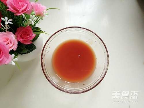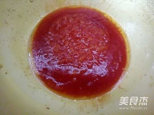 5碗中倒入4勺番茄酱,3勺白糖 ,2勺白醋 ,搅拌均匀
