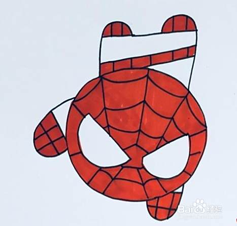 再用蓝色补充一下颜色,那么这个蜘蛛侠就画好啦!