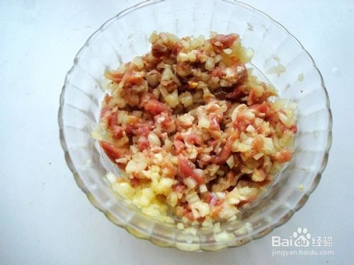 在铺上一层羊肉丁馅,不要加的馅料太多,不用再放别的调料要保持原汁原味