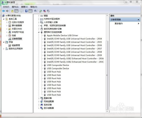 然后,右键点击【我的电脑】,选择【管理】-【计算机管理】,在左侧栏中选择【系统工具】-【设备管理器】,然后在右侧栏中,选择【通用串行总线控制器】-【Apple Mobile Device USB Driver】,然后右键点击,选择【卸载】。