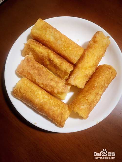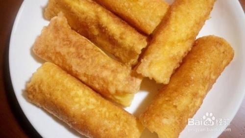 卷的时候我实在没有办法拍!冰箱取出鲜奶冻,用刀切成等分十条,长度不要超过吐司宽度,一片吐司上放上一块鲜奶冻和一勺苹果馅再加一小勺优酪乳,卷起吐司在两端涂上蛋液粘起来,每一片都这么操作…吐司卷好两端沾蛋液再沾少量面粉封口,防止苹果和鲜奶馅在油炸过程中流出,然后整个吐司卷沾蛋液入锅600度低温两面分别炸至金黄,最后进烤箱烤5分钟!(不进烤箱也可以炸完直接吃,但是为了外层的脆度我还是进烤箱烤了,并且烘烤过程中会把炸的时候的油逼出来,吃的时候口感就不油腻了)