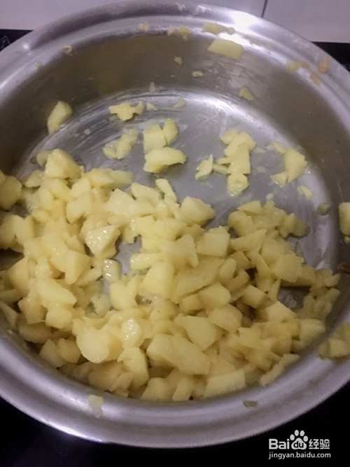 苹果削皮切丁,直接放锅里翻炒,翻炒过程中加入一点点牛奶,防止炒干,炒到苹果软糯不散,出锅加入少量炼乳搅拌(有些亲是加糖的,我家不吃白砂糖,建议亲用冰糖或者蜂蜜,但是刚好都用完了,我就用炼乳代替)